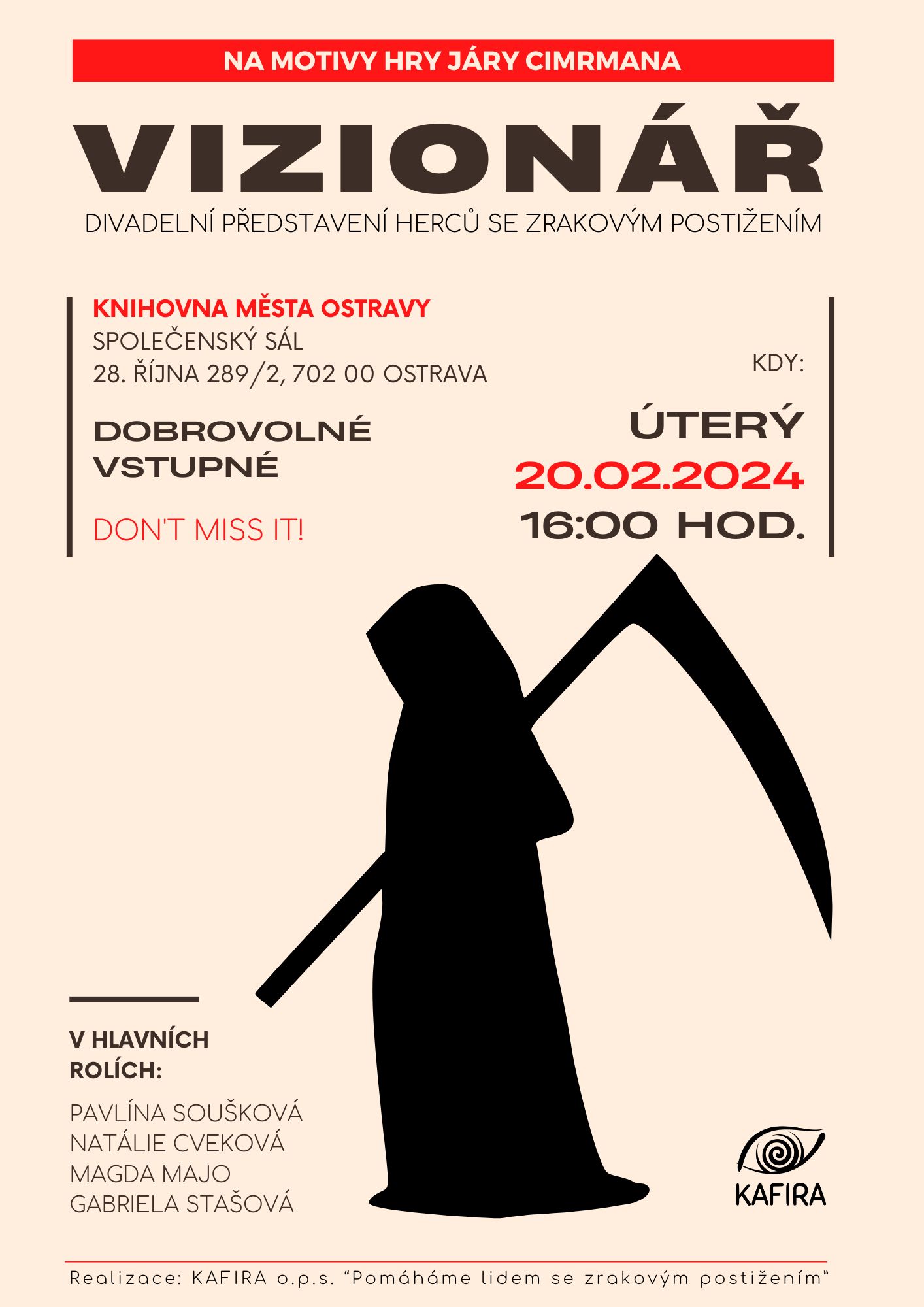 DIVADELNÍ PŘEDSTAVENÍ VIZIONÁŘ 20.02.2024 v 16.00 hod.