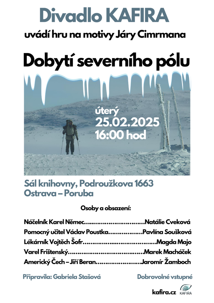 Divadlo KAFIRA vás srdečně zve na jedinečné představení „Dobytí severního pólu“, kde naši hendikepovaní amatérští herci předvedou, že žádná výzva není dost velká!