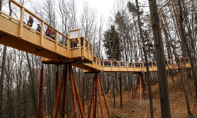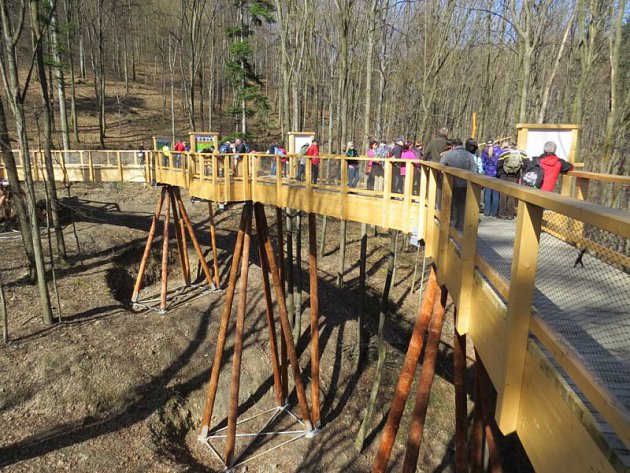 Asi nejatraktivnější částí celé naučné stezky je 85 metrů dlouhý vzdušný chodník, který ve tvaru podkovy začíná i končí přímo za pódiem amfiteátru. Na této 1,8 metrů široké lávce se nachází 6 zastavení, kde se lidé seznámí s životem obyvatel korun stromů.