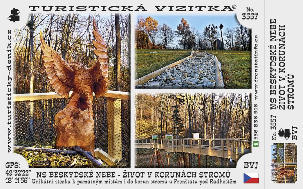 Naučná stezka Beskydské nebe je dlouhá 1 800 metrů a zahrnuje v sobě expozici siluet dravců pod zastřešením pódia amfiteátru, dřevěnou lávku nad roklí potoka Vlčáku s expozicí Život v korunách stromů a dalších šest zastavení v rámci celé lokality Horeček.